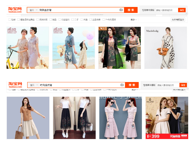 比如说:时尚连衣裙,妈妈连衣裙,他们背后的买家人群是不一样的