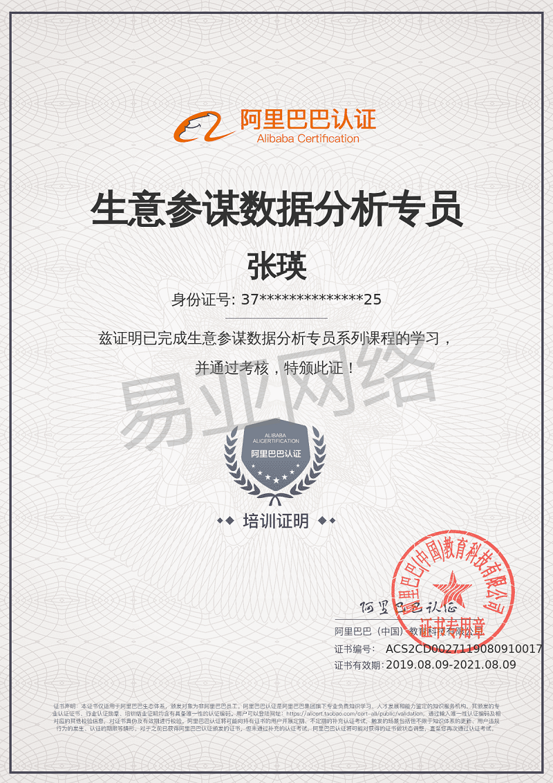阿里巴巴认证-店铺运营各岗位持证上岗